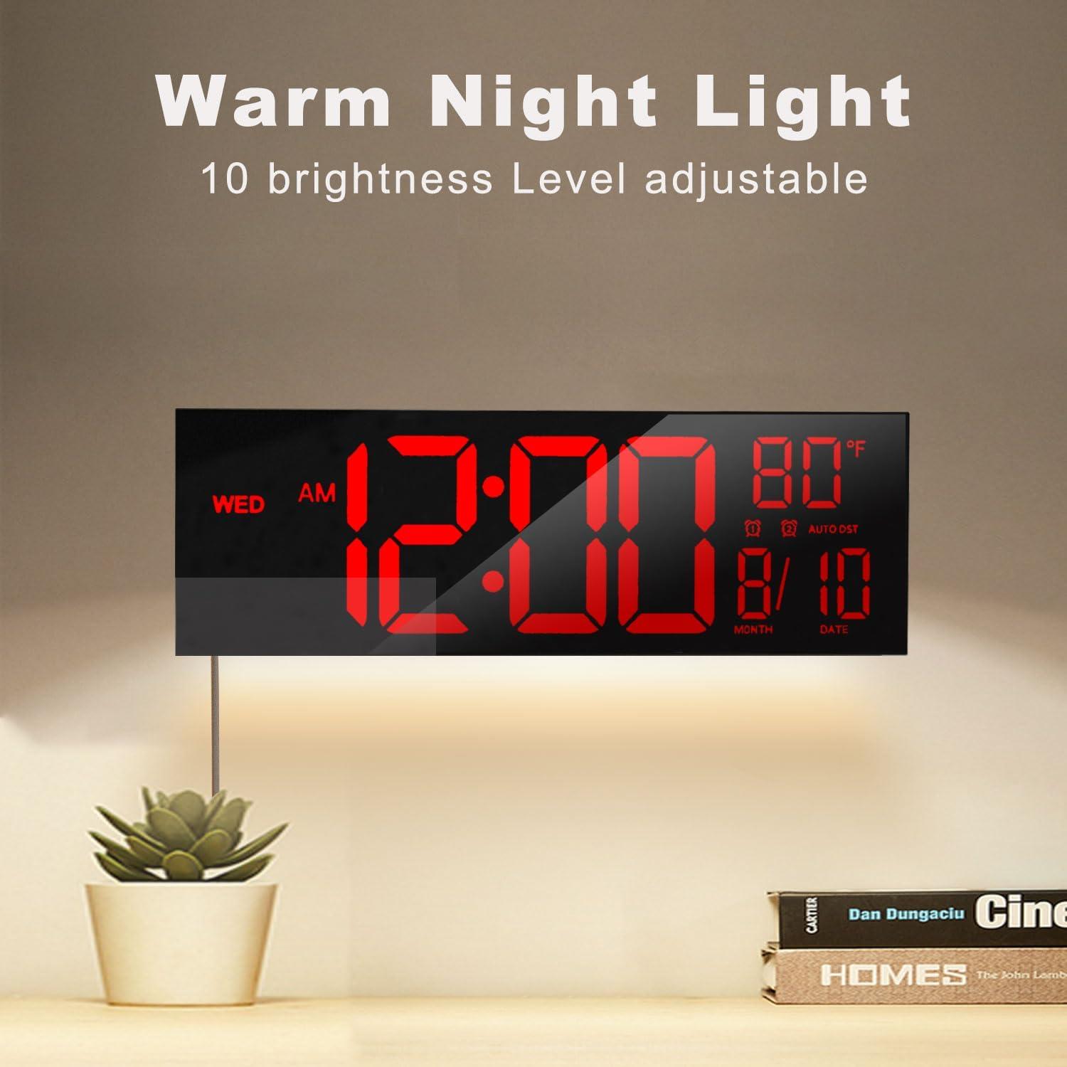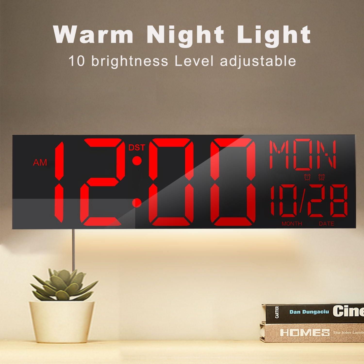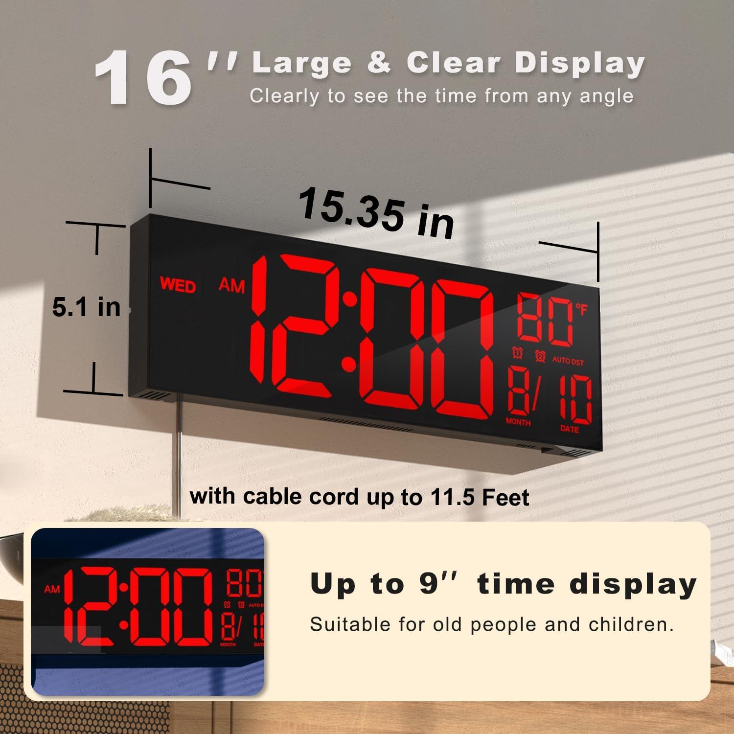 JALL 30″ Large Digital Wall Mount Clock with Remote Control, Alarm, Big LED, Countdown, Auto DST, Temperature for Living Room Classroom Desk, Xmas, Birthday Gift for Senior Men Women Mom Dad, Blue(Red)