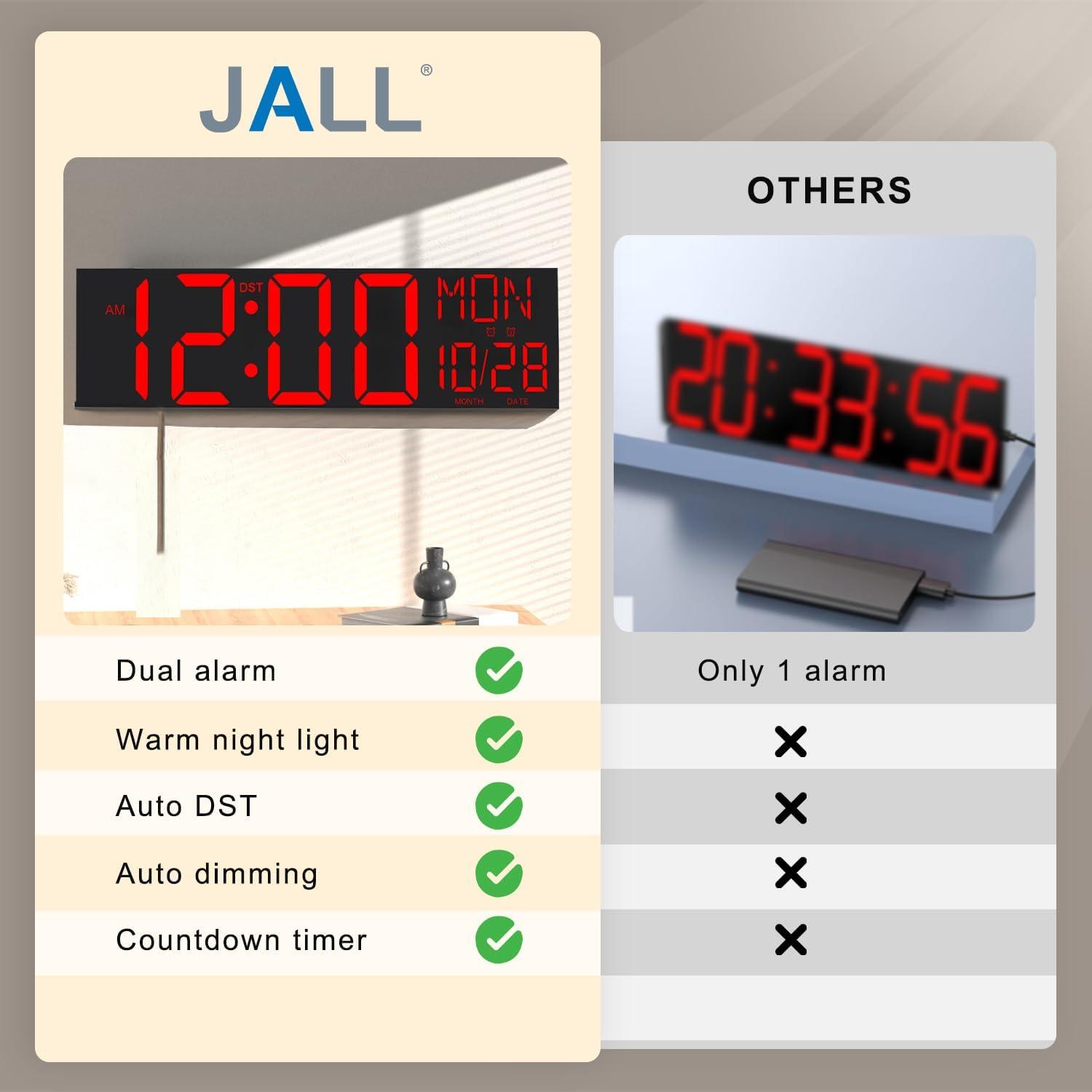 JALL 30" Large Digital Wall Mount Clock with Remote Control, Alarm, Big LED, Countdown, Auto DST, Temperature for Living Room Classroom Desk, Xmas, Birthday Gift for Senior Men Women Mom Dad, Blue(Red)